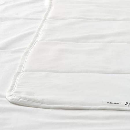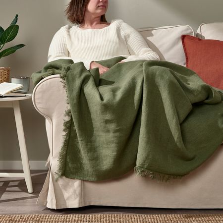 Антрацитовый плед HUMLEMOTT создаёт дополнительный слой тепла и комфорта на диване и во время ужина на свежем воздухе прохладным вечером.