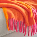 Мягкий, легкий и пушистый — этот ярко-розово-оранжевый плед с напоминающей мохер фактурой всегда готов вас согреть.