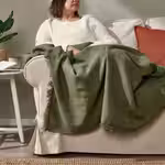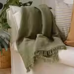 Уют и комфорт — мягкая ткань из смеси льна и хлопка серо-зеленого цвета придает интерьеру непринужденный и располагающий облик и становится лучше с каждой стиркой.