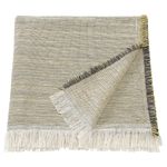 Это мягкий и теплый плед из ткани с нитями желтого, темно-синего и серого цветов, которые хорошо видны в декоративной бахроме по коротким сторонам. Естественные вариации цвета ткани придают каждому изделию уникальность.