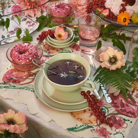 Летом мы проводим на свежем воздухе больше времени, и прохладительные напитки на улице очень удобно подавать на подносе с красочным цветочным узором.