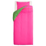 100% хлопок – натуральный материал, который становится мягче с каждой стиркой. Двуцветный пододеяльник с отделкой декоративной лентой и одноцветная наволочка. В комплект входит: 1 пододеяльник (150×200 см) и 1 наволочка (50×70 см).