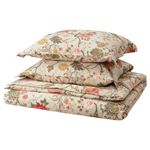 Комплект постельного белья NÅLBJÖRNBÄR расцветает зелёными цветами на белом фоне.