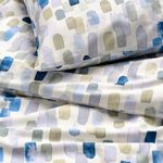 Смесь хлопка и вискозы делает ткань прочной и шелковистой. Хлопок пропускает воздух и поглощает влагу, а вискоза, изготовленная из древесной пульпы, придает материалу гладкость и легкий блеск. Вискоза производится из древесной пульпы и имеет гладкую поверхность, прохладную и мягкую на ощупь. Пододеяльник застегивается на пластиковые кнопки по нижнему краю. Наволочка с клапаном.
