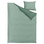 Пододеяльник зеленый с одной стороны и темно-зеленый — с другой. Плотная перкаль с приятным легким блеском из смеси хлопка и вискозы превосходно пропускает воздух и впитывает влагу, обеспечивая комфортный сон.