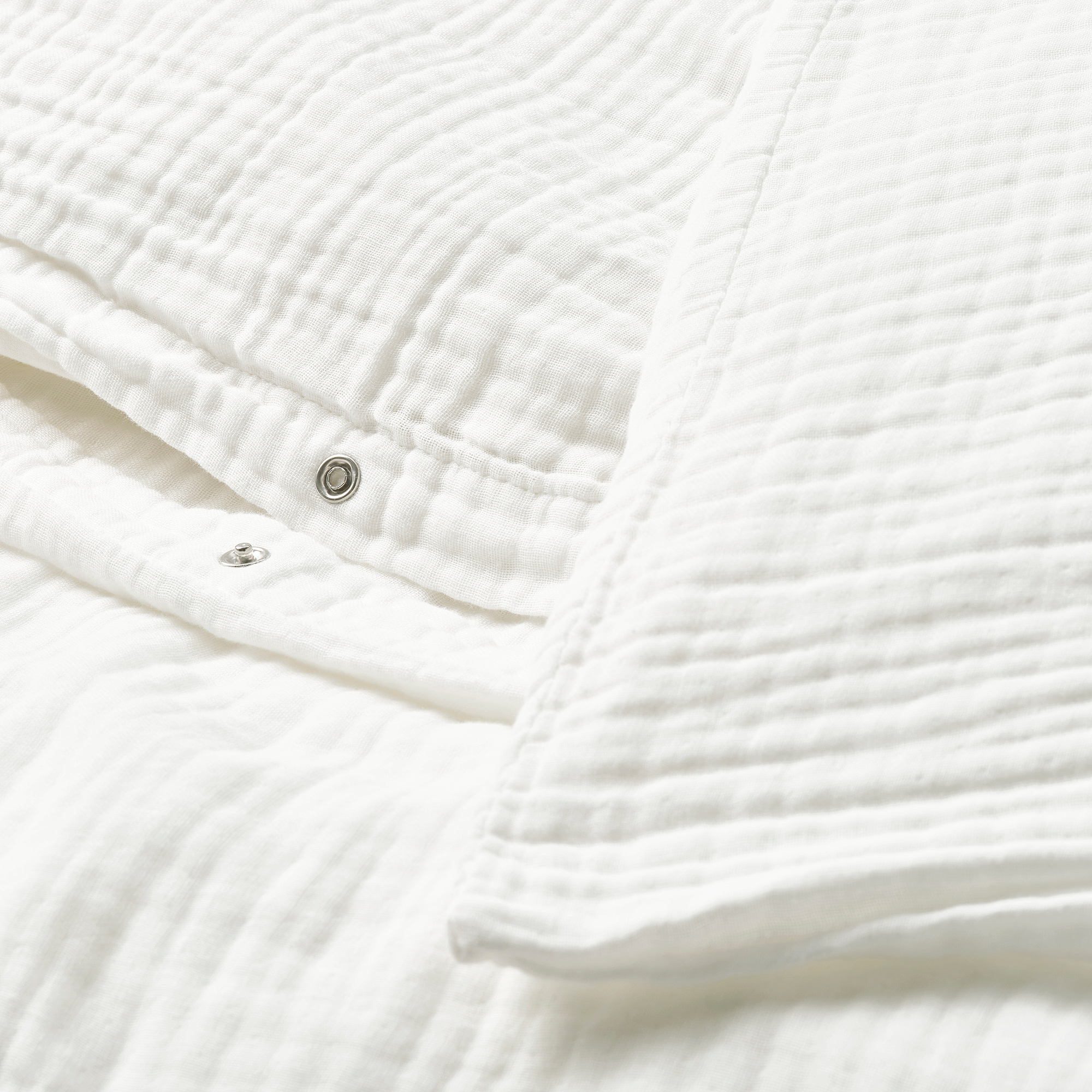 Пододеяльник застегивается на пластиковые кнопки по нижнему краю.