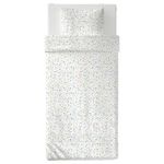 Пододеяльник и наволочка с орнаментом, напоминающим разноцветную мозаику, который легко комбинировать с другими цветами.
