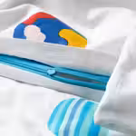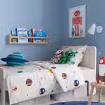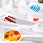 Этот белый пододеяльник из хлопка и вискозы с красочным принтом в виде спутников, звёзд и планет выполняет одну миссию: сделать детскую кровать уютнее.
