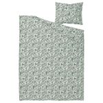 Комплект постельного белья NÅLBJÖRNBÄR расцветает зелёными цветами на белом фоне.