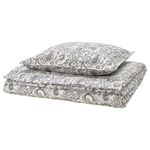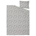 Комплект постельного белья NÅLBJÖRNBÄR расцветает зелёными цветами на белом фоне.