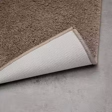 Безворсовый ковер в нежной меланжевой расцветке в бежевых тонах наполняет интерьер теплом и приятно ощущается под ногами.
