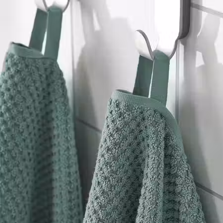 Мягкое и пушистое бирюзовое полотенце ГУЛВИАЛ средней толщины (плотность 500 г/м²) изготовлено из хлопка, обладает прочностью и хорошо впитывает влагу.