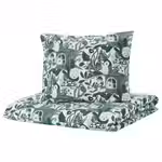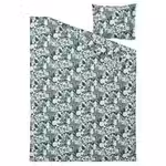 Натяжная серо-зеленая простыня ДВАЛА изготовлена из дышащей и поглощающей влагу хлопковой ткани, что обеспечивает ровную и комфортную температуру в течение всей ночи.