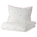 Особенности «VÄNKRETS ВЭНКРЕТС Пододеяльник и наволочка - орнамент «точки» белый/розовый 150x200/50x70 см» отмеченные производителем IKЕА: