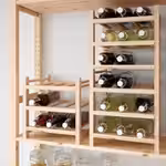 Здесь есть место для 9 бутылок сока или вина, а если этого мало, установите вторую полку сверху и поставьте еще больше бутылок по обеим сторонам. Хотите, чтобы эта подставка гармонично вписалась в ваш интерьер? Деревянную поверхность