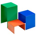 В набор входит: 1 зеленая подставка (Д10xШ10xВ16 см), 1 синяя подставка (Д10xШ10xВ11 см) и 1 красная подставка (Д10xШ10xВ5 см).