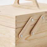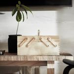 Этот настольный органайзер с отделениями разных размеров напоминает старинную швейную коробку. Отличное решение для хранения полезных мелочей. Массив необработанного дерева можно покрасить в ваш любимый цвет.
