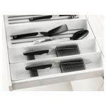 Обеспечит идеальный порядок в ящике, и вам не придется тратить время на утомительные поиски нужного предмета. Закругленные углы – легко мыть. Ширина: 10 см. Глубина: 50 см. Высота: 5.4 см. Пластмасса АБС, Полиуретановая пластмасса