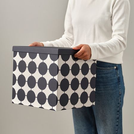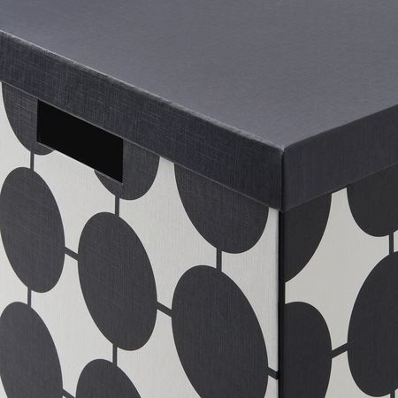 TJENA 506.010.56 Коробка с крышкой, белый чёрный/точечный 32x35x32 см