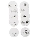 Двусторонняя подставка: одна сторона – с рисунком, вторая – однотонная. Защищает поверхность столешницы и уменьшает шум от бокалов и кружек. Все подставки с разным рисунком. Диаметр: 10 см. Количество в упаковке: 10 шт