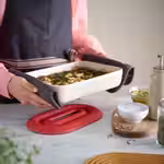 Накройте квадратный контейнер из серии ИКЕА 365+ герметичной крышкой, чтобы остатки еды в холодильнике дольше оставались свежими.