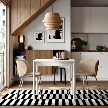 Два вкладные доски позволяют легко раздвинуть стол, чтобы усадить за него 4 человек вместо 2, и так же легко убрать их под столешницу, когда гости разошлись по домам.
