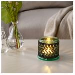 Теплый свет свечи красиво проходит через орнаментальную поверхность подсвечника. Подходит для свечей в металлических подставках и для греющих свечей. Для свечи в металлической подставке или формовой свечи диам. макс. 6 см. Диаметр: 11 см. Высота: 9.