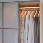 Можно использовать за раздвижными дверцами.