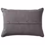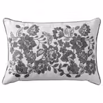 Хлопковая подушка с вышитым цветочным орнаментом в серых тонах и однотонной темно-серой обратной стороной с застежкой на пуговицах.