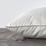 Простая в уходе низкая подушка из смесовой ткани из хлопка и лиоцелла с наполнителем из полого волокна, полученного из переработанного сырья.