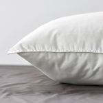Высокая и простая в уходе подушка с чехлом из смесовой ткани из полиэстера и хлопка и наполнителем из шарикового полиэстерного волокна на основе переработанного сырья.