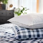 Высокая подушка с мягким хлопковым чехлом и наполнителем из утиного пуха и пера.