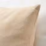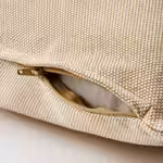 Плотная ткань, частично изготовленная из переработанного хлопка, имеет тактильную фактуру, которая придает этой желто-бежевой подушке особую выразительность.