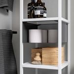 Просто повесьте эту полку между полками открытого каркаса или под настенный модуль. Для этого не нужны ни дополнительные инструменты, ни лишние отверстия в стене. Боковые стенки защищают от пыли и капель брызг и надежно удерживают предметы.