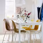 Абажур обеспечивает направленное освещение над обеденным столом и приятный рассеянный свет во всей комнате.