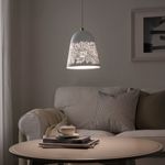 Подвесной светильник СОЛЬСКУР с нежным перфорированным орнаментом с изображениями птиц и растений — просто идеальное решение для создания романтической атмосферы. Светильник обеспечивает мягкое освещение для настроения.