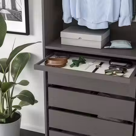 Установите эту регулируемую полку в каркас гардероба ПАКС туда, где она вам нужнее.