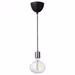 Этот современный подвесной светильник оснащением никелированным цоколем и разноцветной светодиодной лампой овальной формы, которая похожа на переливающийся мыльный пузырь. Сквозь двойное стекло льется свет от спиральных нитей накала.