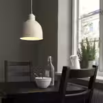 Этот подвесной светильник с круглым текстильным абажуром белого цвета и регулируемым шнуром мягко рассеивает свет, создавая уютную атмосферу.