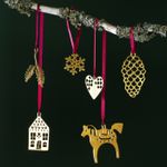 В набор: 1 лошадка (Ш 10,5 см, В 8 см), 1 сердечко (Ш 5,5 см, В 5 см), 1 лист (Ш 5,5 см, В 9 см), 1 шишка (Ш 5 см, В 9 см), 1 снежинка (Ш 4,5 см, В 4,5 см), 1 домик (Ш 5 см, В 8,5 см), тесьма (120 см).