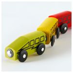 Вагончики легко соединяются благодаря магнитам. Подходит к большинству продаваемых детских железных дорог. Рекомендовано для детей от 3 лет. Комбинируется с другой железной дорогой, поездами и т.п. из серии ЛИЛЛАБУ. Длина: 24 см. Ширина: 3 см.