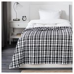 Сочетание толстых и тонких нитей придает фактуре ткани особую выразительность. Ткань, окрашенная в пряже; рисунок виден с двух сторон, поэтому ткань хорошо смотрится и с обратной стороны. Подходит для кроватей шириной 90 см. Подзор ок.