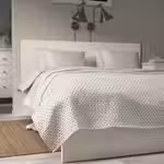 Это белое с оттенком покрывало с декоративными темно-серыми стежками сделает вашу спальню еще уютнее.