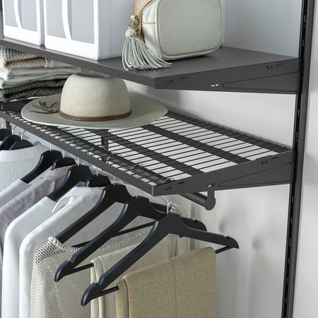 Установите в систему для хранения БОАКСЕЛЬ полки для обуви, на которых аккуратно разместится обувь всех членов семьи — от резиновых сапог до туфель на шпильках.