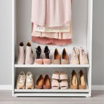 Можно установить вплотную к задней панели или к переднему краю каркаса ОПХУС глубиной 55 см. Чтобы обеспечить обзор и место для высокой обуви, установите одну полку ближе переднему краю, а другую на более высоком уровне к задней панели.