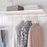 На одну полку можно положить около 15 пар сложенных брюк или 30 футболок.