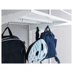 На обратной поверхности полки можно установить крючки, чтобы повесить инструменты, спортивное оборудование, садовые инструменты и т.д.