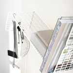 Эта практичная панель для хранения с полкой, контейнером, зажимами и крючками поможет вам навести порядок во всех мелочах — от ручек и заметок до ключей и мобильных телефонов — даже на небольшой площади.