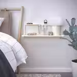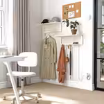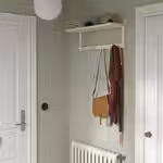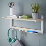 Продуманная навесная полка SKOMAKARE с крючками предназначена для хранения ключей, телефонов и сумок, но на неё можно поставить растения, светильник и любые другие вещи.
