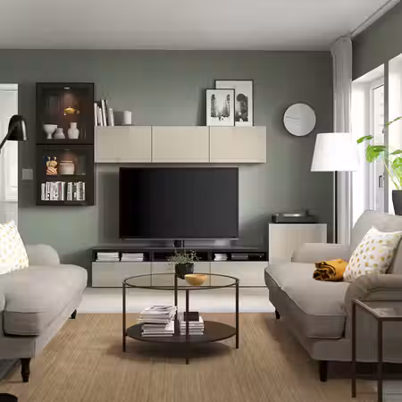 Тумба для телевизора БЕСТО может использоваться для телевизора и всех необходимых гаджетов.